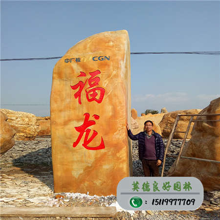 | 中国广核集团有限公司在良好园林订购了一块景观黄蜡石,该景石造型优美,两边线条自然垂直,整体感觉宛如丰碑。正是适合用于做门牌石、招牌石这一类的用途,置放地点也有多处可选,可置放于公司、校园、小区、公园之类的地方,我司还有各种规格的园林景观石,正待您前来选购。